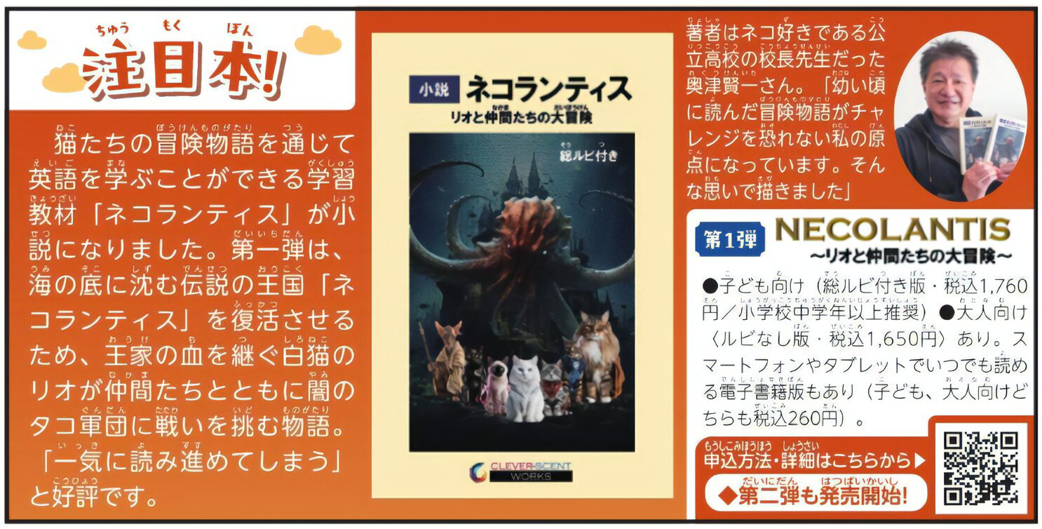 小説「ネコランティス リオと仲間たちの大冒険」が注目本としてこどもタウンニュース町田版に取り上げられました。
